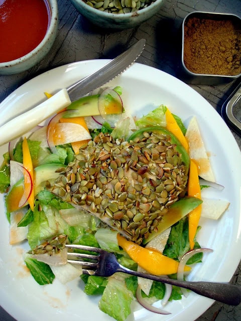 I love the pepitas on the chicken, not only is it gorgeous, but I bet it tasted incredible! What a perfect blend of flavors for the salad too, the mango was such a nice addition…..