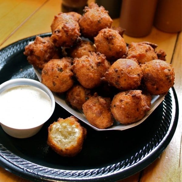 Okie Dokies Smokehouse’s Jalapeno Hushpuppies & Red Slaw