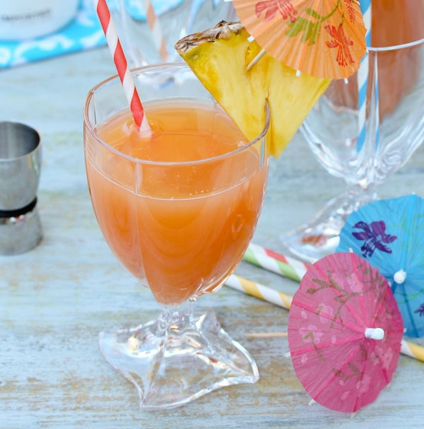 This Hawaiian Cocktail is a new favorite in our house and a sure hit at our Christmas gathering next week. Forget “Let it Snow,” we’ll be singing “Mele Kalikimaka” all evening long!