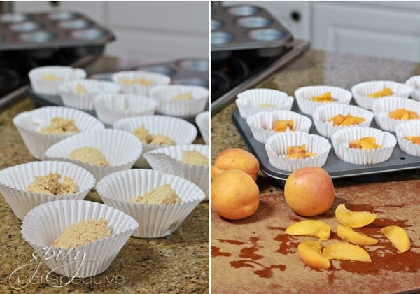 Place 4 apricot slices in a pinwheel pattern on the top of each mini cornmeal cake.