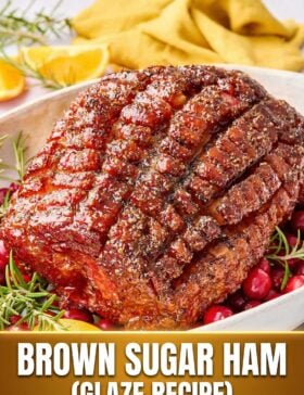 Baked Ham with Brown Sugar Ham Glaze – Our easy baked ham recipe is made with a flavorful brandy and brown sugar glaze. It’s the perfect main dish for celebrating Thanksgiving or any occasion!