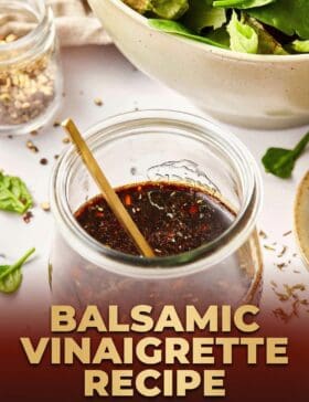 Find the full Balsamic Dressing Recipe with ingredient proportions, detailed instructions, and a video tutorial in the printable form at the bottom of the post.
