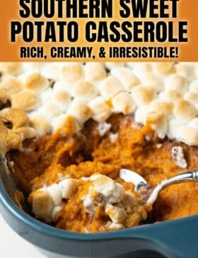 Our best, easiest, most deliciously authentic Southern Sweet Potato Casserole recipe uses less sugar and adds a dash of cinnamon for a comforting, classic holiday side dish. It’s perfect to top with marshmallows and pecans – or other favorite nuts!
