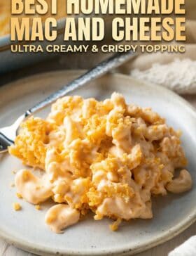 Find the FULL Best Homemade Mac and Cheese Recipe with ingredient proportions, detailed instructions for both cooking methods, and a video tutorial in the printable form at the bottom of the post.