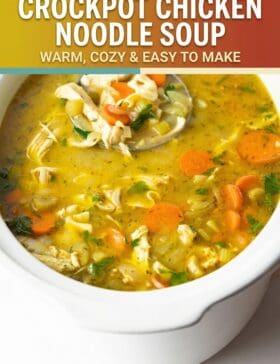 When I’m not feeling my best, or simply want a cozy all-in-one meal, I reach for this easy crockpot chicken noodle soup recipe. It’s packed with nourishing slow cooked chicken, fresh veggies, and tender egg noodles in a savory broth for the ultimate effortless comfort food that makes me feel good from the inside out, and tastes amazing!