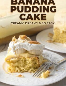 Layered Banana Pudding Cake: This ultra-moist banana cake recipe is topped with creamy pudding, fresh bananas, whipped cream, and vanilla wafers. It’s easy to make, and packed with southern charm!