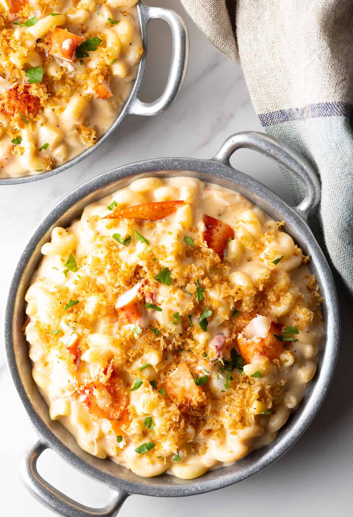 Sprinkle on the Breadcrumbs – You can either pour the whole pot of lobster mac and cheese into a large serving dish, or scoop out individual servings as needed. Either way, generously sprinkle those toasted breadcrumbs on top right before serving so they stay super crispy.
