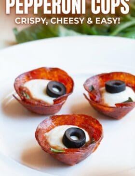 Simple ingredients – To make these pepperoni cups, all you need is five easy-to-find ingredients — pepperoni, mozzarella, and a handful of pantry staples.