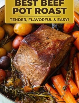 My Mom’s Best Beef Pot Roast Recipe is tender, juicy, and flavorful. It’s the perfect Sunday dinner to bring the family together, and this classic comfort food recipe can be made in the oven or slow cooker!