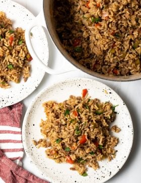 This classic recipe for Cajun Dirty Rice features ground beef, veggies, and lots of vibrant spices. It’s a one-pot dish that is deliciously zesty, comforting, and great to serve as a...