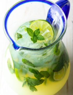 Get the party started with a pitcher of these refreshingly delicious Mint Mojitos! The drinks are bright and zippy, whether you make this recipe with rum...