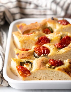 Tomato Basil Focaccia Bread Recipe – This easy recipe features flavorful cherry tomatoes, fresh basil, and creamy goat cheese baked right into tender and...