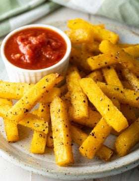 Baked Crispy Polenta Fries Recipe – Crunchy, tender polenta fries are easily baked in the oven for a tasty and fun side dish or...