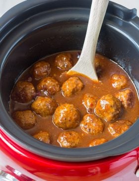Crockpot Cocktail Meatballs Recipe: Fabulous Sweet and Spicy Crock Pot Meatballs for holiday parties, made with a brilliant 3-ingredient glaze!