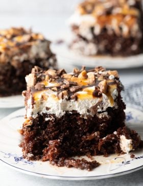 Retro Better Than Sex Cake – This classic poke cake recipe is made with Devil’s food cake mix, shredded coconut, whipped topping, caramel, and...