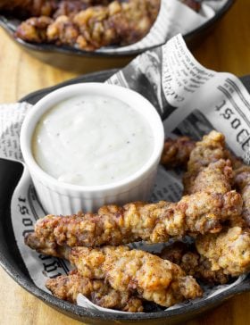 Steak Fingers Recipe with Country Gravy: Crispy chicken fried steak strips, with ultra creamy white gravy for dipping. This is a dish that no...