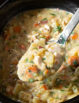Healthy Crockpot Potato Soup with Chicken is a thick and creamy, comforting potato soup with chunks of chicken and tons of vegetables. By combining tender potatoes with...