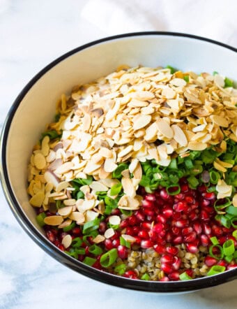 Zippy Lentil Salad with Apple Cider Vinaigrette features juicy pomegranate, toasted almonds, scallions, and a rich and tangy apple cider vinaigrette, perfect to grace...