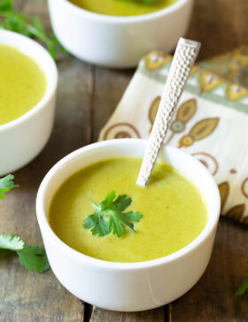 Creamy Poblano Pepper Soup Recipe – This smoky, lightly sweet and spicy soup features roasted poblano peppers, molten queso cheese, fresh cilantro and spices,...