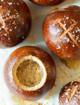 Honey Wheat Bread Bowl Recipe – Learn How to Make Bread Bowls with this easy recipe. Gorgeous glazed bread bowls with a sweet wheaty...