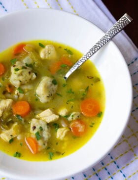Chicken and Dumpling Soup is a modern take on the classic, with mini dumplings simmered together with tender chicken and vegetables in a flavorful broth!...