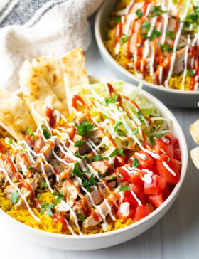 This Halal Chicken is a Middle Eastern street food favorite that layers zesty grilled chicken with tangy yogurt sauce and fresh chopped veggies over...