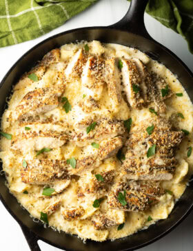 This copycat Olive Garden Asiago Tortelloni Alfredo recipe includes cheesy pasta in a rich and creamy homemade Alfredo sauce, topped with tender grilled chicken...