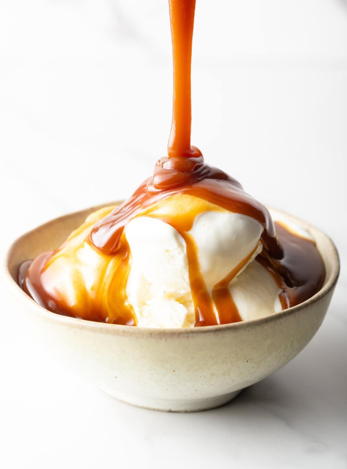 If you’re lucky enough to have leftover sauce, make sure you let the caramel cool completely to room temperature before storing it in a heatproof glass container. Storing and refrigerating while it’s still hot can cause it to become grainy, which no one wants!